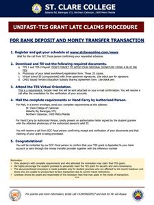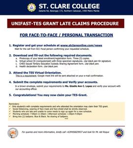 All slots for the first 4 batches releasing of UNIFAST TES GRANTEES have already been filled up. The schedule is based on a first-come, first-serve basis. The next schedule will be posted on OCTOBER 29, 2020. Please be reminded that only qualified grantees are allowed to register. Please call (02) 2324483 for inquiries
